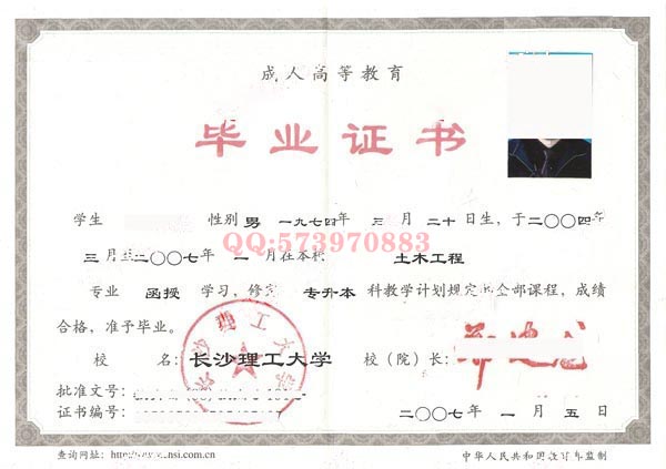 长沙理工大学函授本科毕业证样本信息名称:长沙理工大学继续教育学院简称:长沙理工类型:成人教育(成教)地址:湖南省长沙市(天心区)赤岭路45号性质:二级学院隶属:长沙理工大学校长:郑健龙(2003年4月~至今)校训:博学、力行、守正、拓新专业...